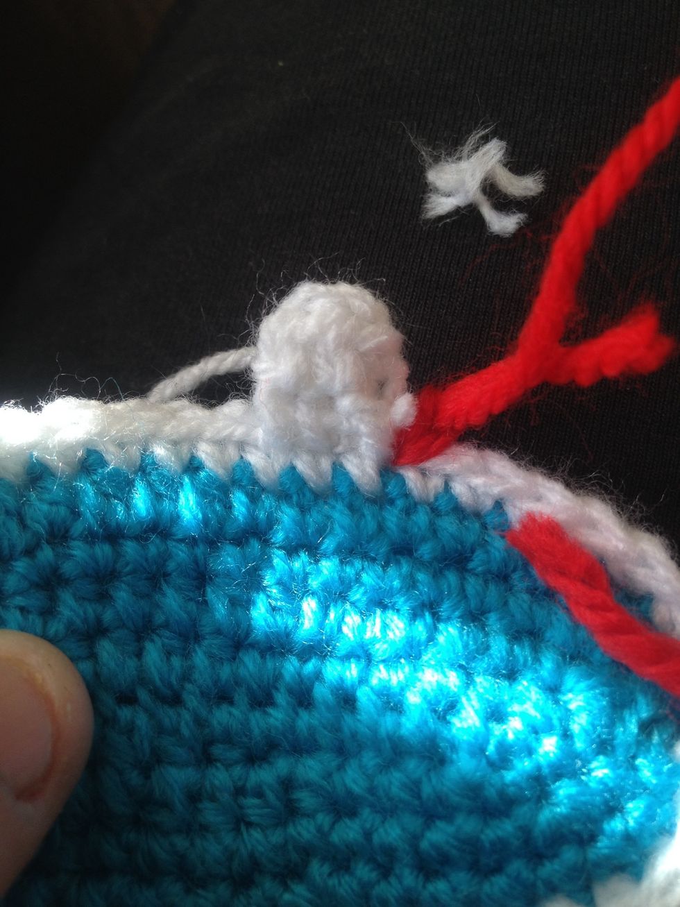 Now do 2 slip stitches into the next 2 stitches. DO NOT CUT YARN and FASTEN OFF