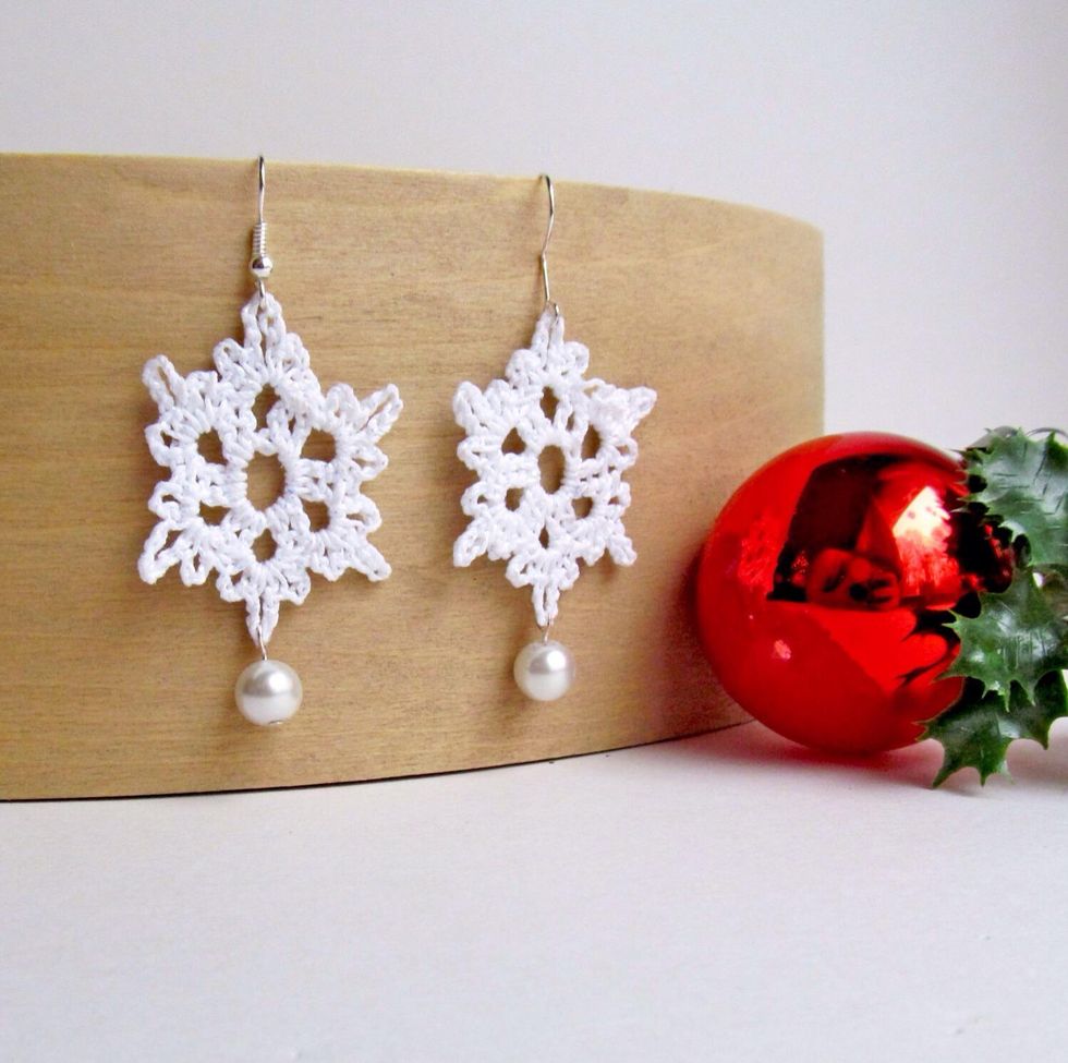 How to make crochet snowflake earrings with pearl accents.