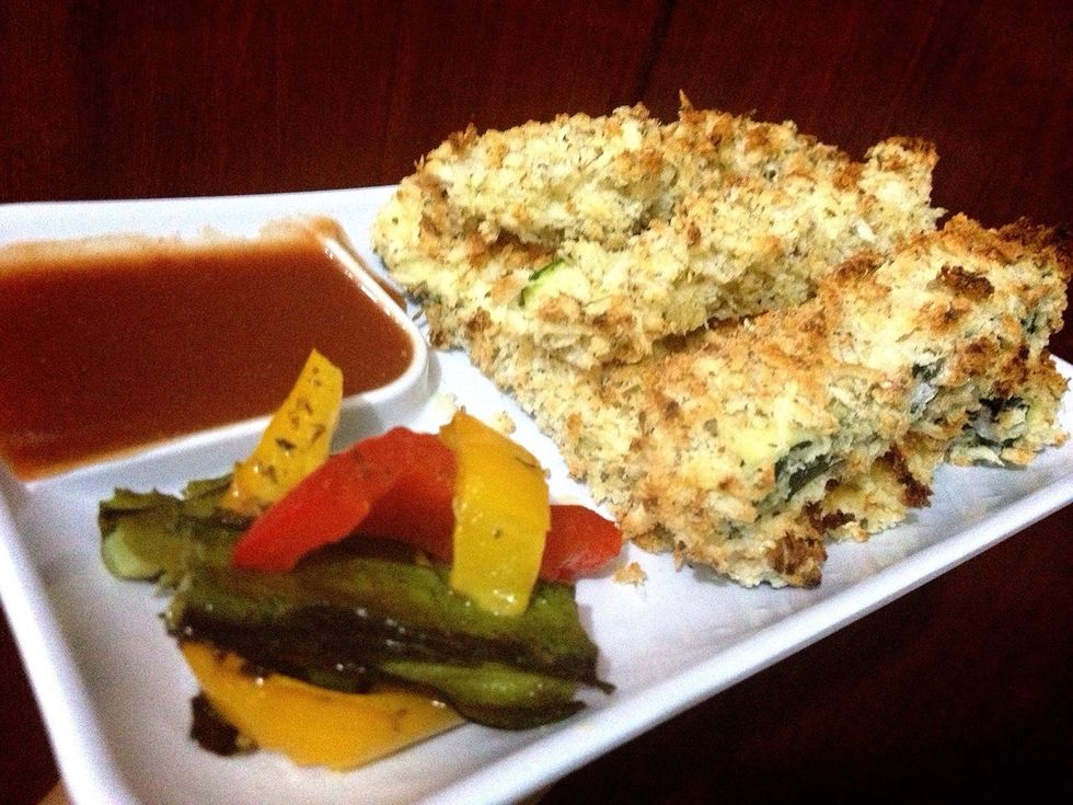 Completely coat the zucchini in panko breadcrumbs + dried herbs