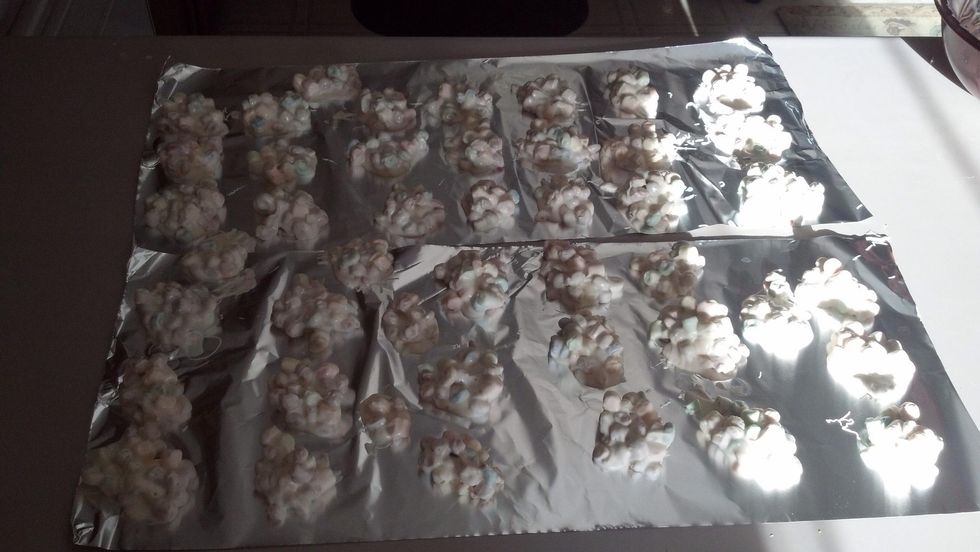 Put spoonfuls on to tinfoil, they can be as big as you want them to be.