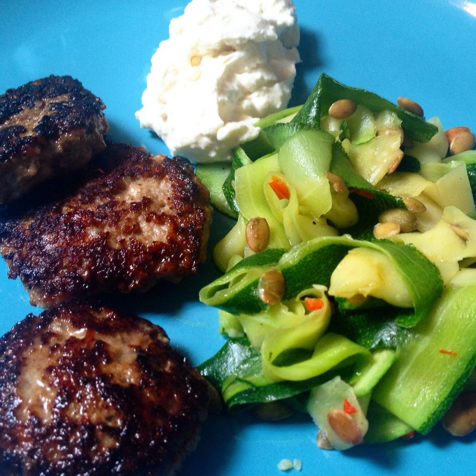 Peel the zucchini until you hit the core with the seeds. The zucchini is rather watery so the core will not be used in his recipe. Instead throw the remaining zucchini into a ratatouille..
