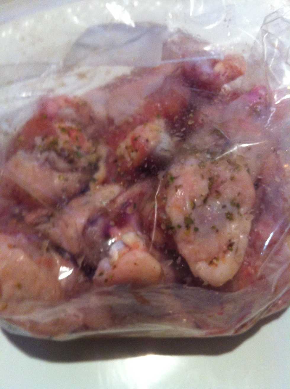 Place wings in a zip lock bagMix ingredients with chicken and marinate 2 hours.Prepare indirect grill. 250 degrees. Cook 1 hour. Baste every 20 minutes. Cook until juices run clear.
