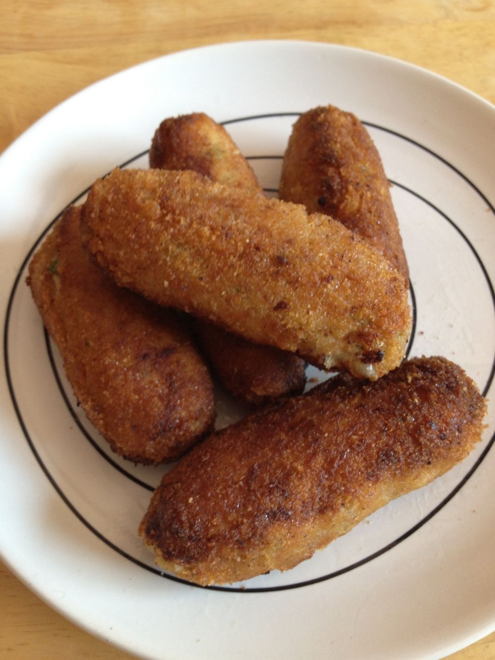 When you're ready to go, fry the croquetas in hot oil until golden brown. Remove when done and drain on paper towel.