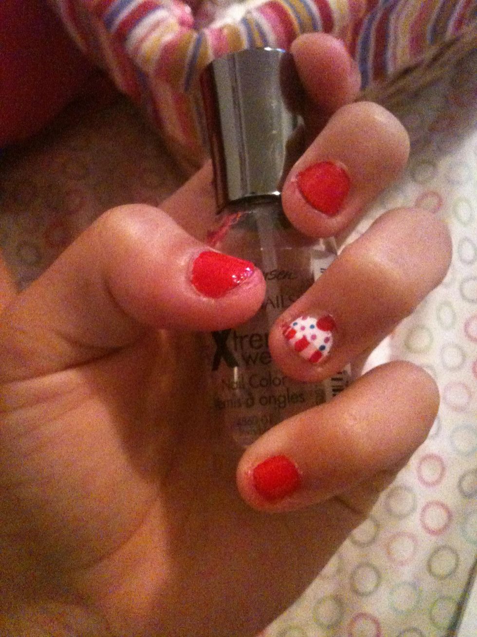 Using different colored polish paint small dots, sprinkles