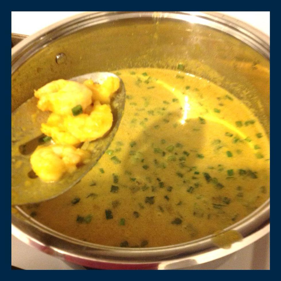 Squash in the pot with bouillon mixture, onions. Add curry powder and spices now. Cook until tender.