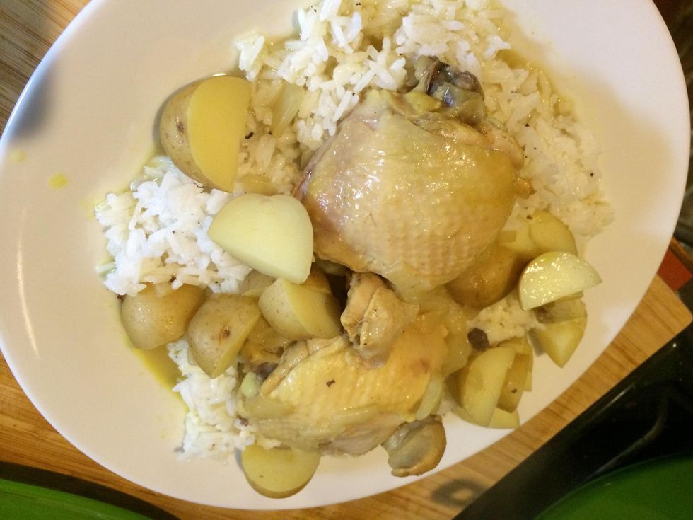 Serve (2) cooked thighs over cooked rice, per person. Spoon/ladle potato and curry liquid over dish. Enjoy!