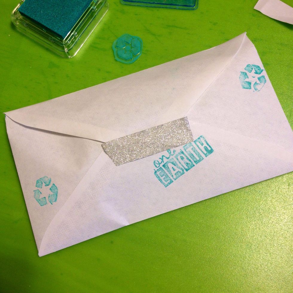 All you really need for this is an envelope, paper roll, string and tissue paper but stamps and glitter tape never hurt! Gather your materials :)
