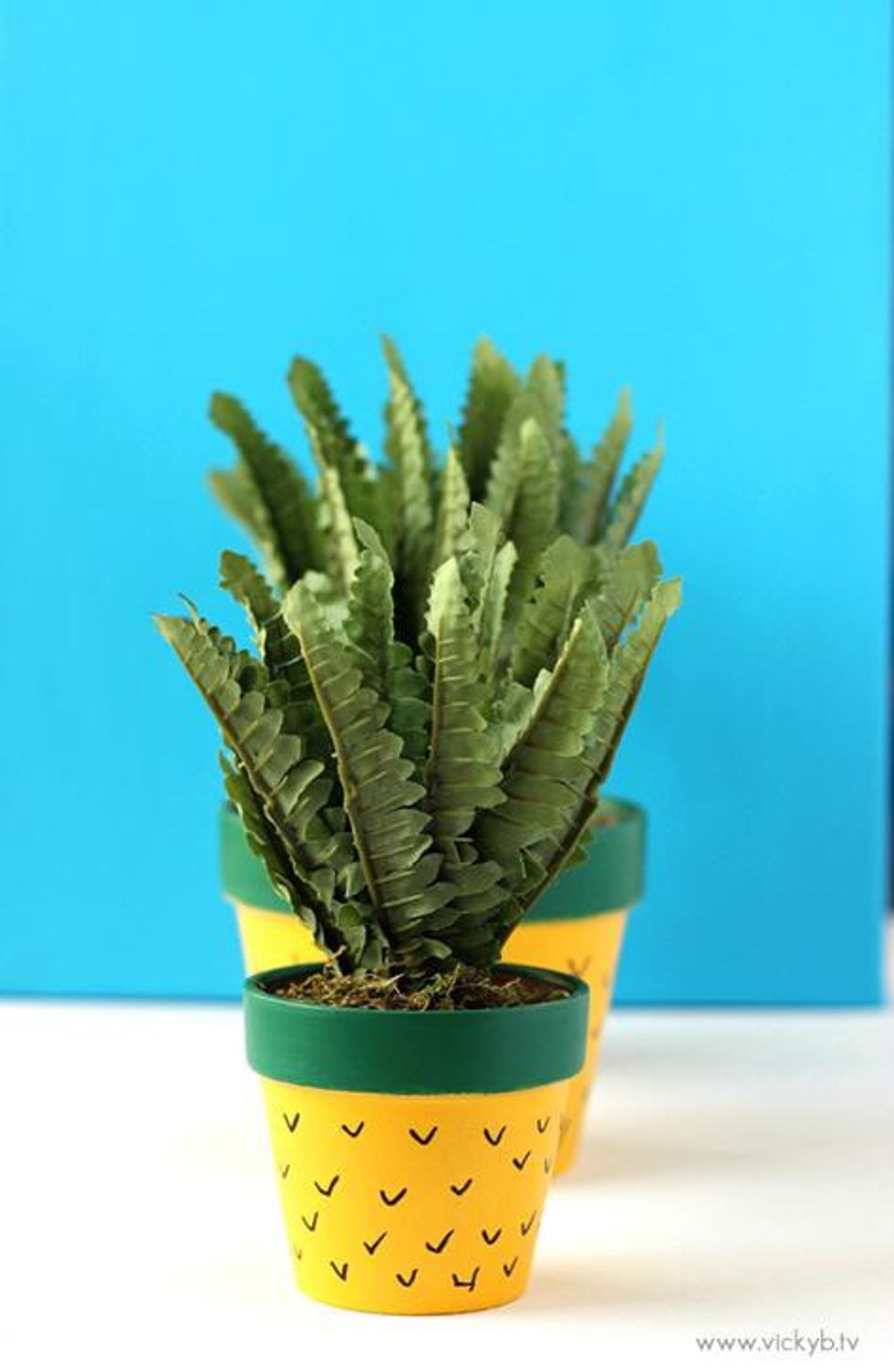 Paint the top of the pot green. Once you have painted the pots and let them dry, start by making little “V” signs around the pot.