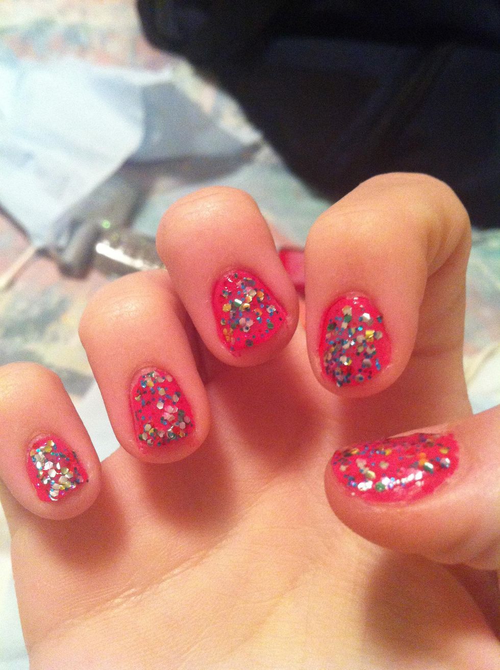 Now paint over your nails with your glitter polish. You can put as little or as much glitter as you'd like.