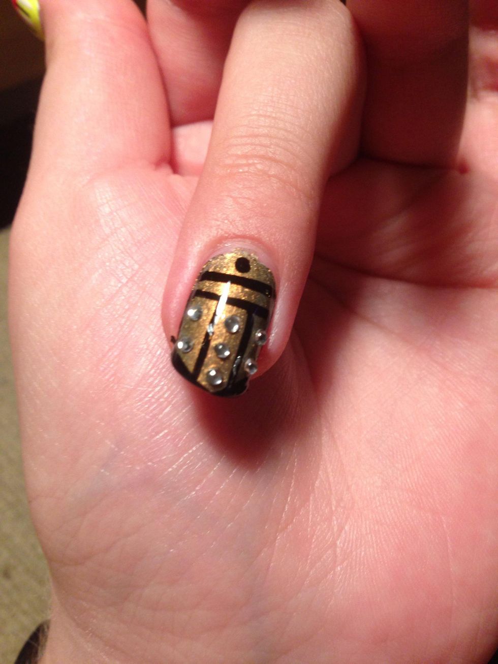 Then add silver nail gems. Three in the middle and two on the sides. (I just used silver polish here because I'm using a fake nail and I'd rather not waste the gems)