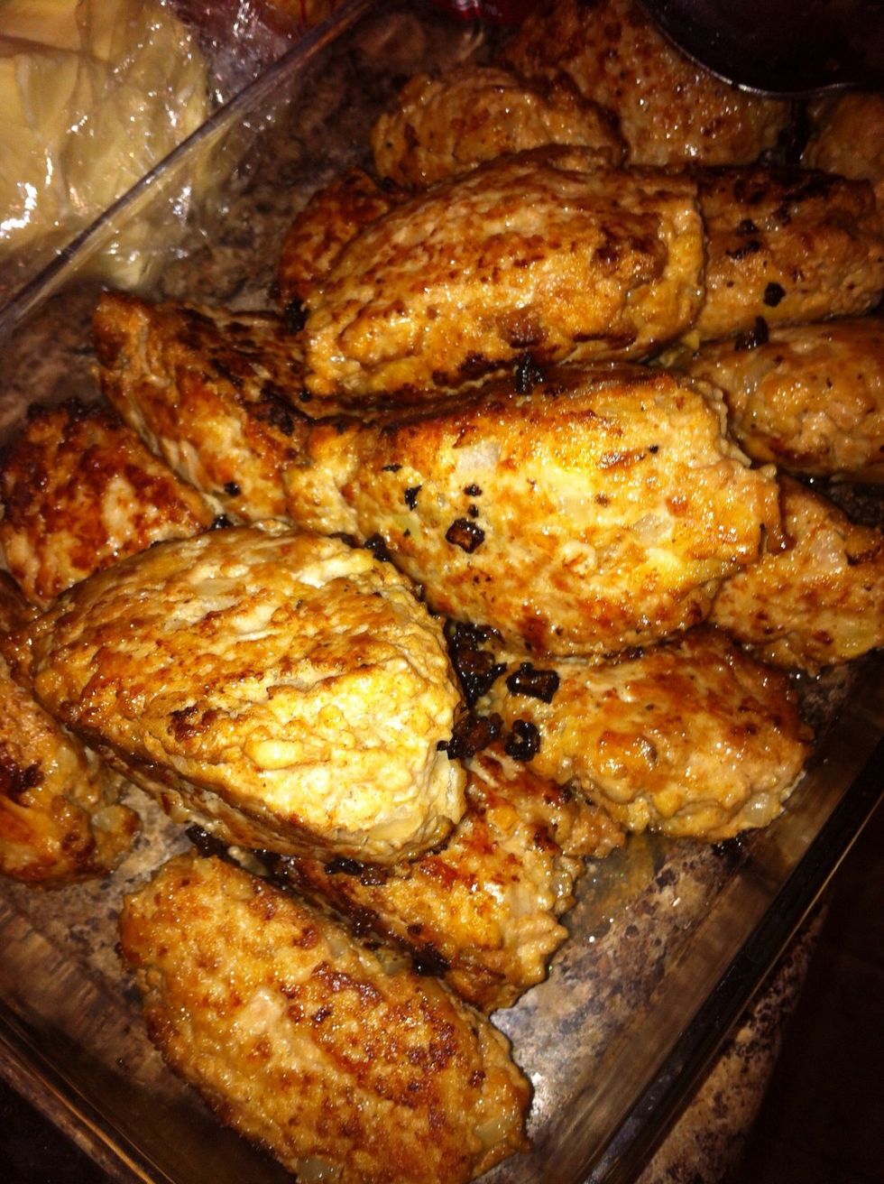Mix the meat with the onions, salt & pepper, eggs & bread/milk mixture.