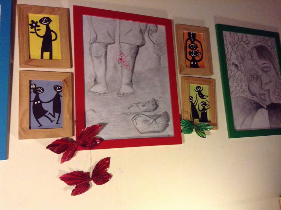 Open the folded pages and now you've got the shape of the butterfly .. For me ,, I'd like to spray my butterfly with my room's colour ! ,, this way .... ---->