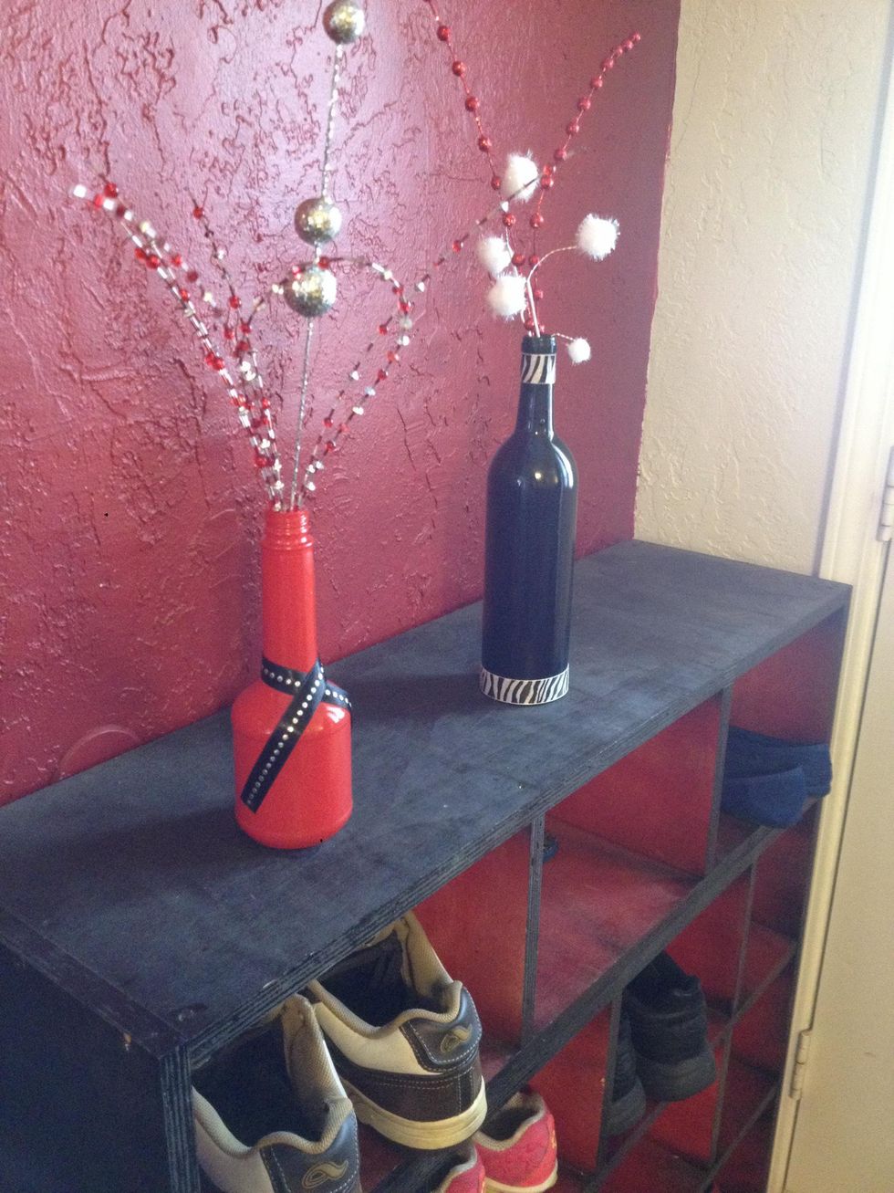 Make anything you choose on your bottle and secure the ends on the bottle with the super glue. I also did another and wrapped ribbon around it. Be creative!