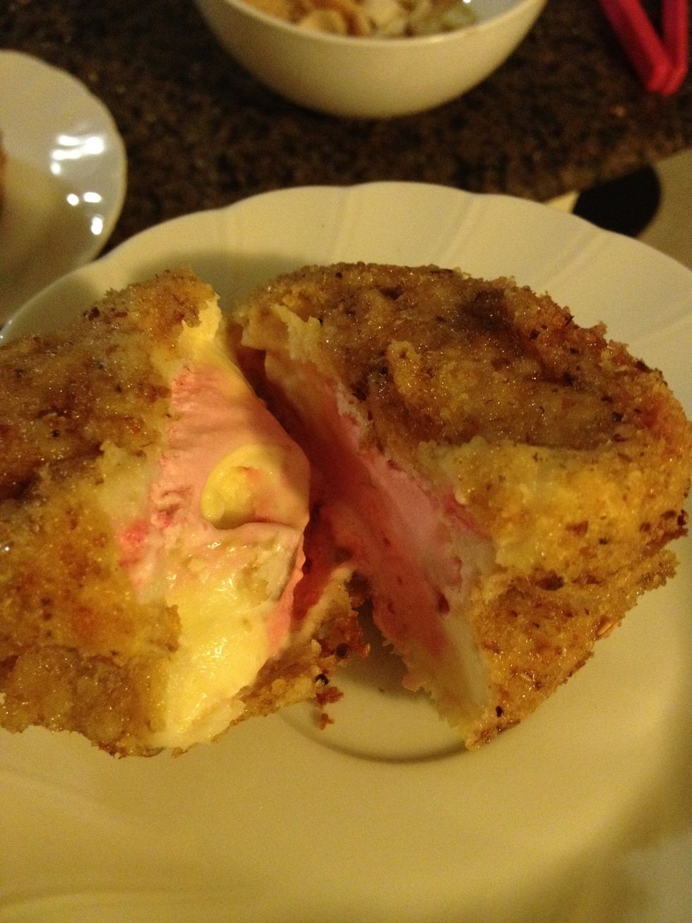 Deep fry the ice cream until golden brown (make sure the oil is hot enough)