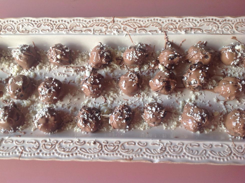 Melt the milk & white chocolate over a pan of simmering water, or in a microwave, until smooth and runny ( I prefer to microwave the chocolate)