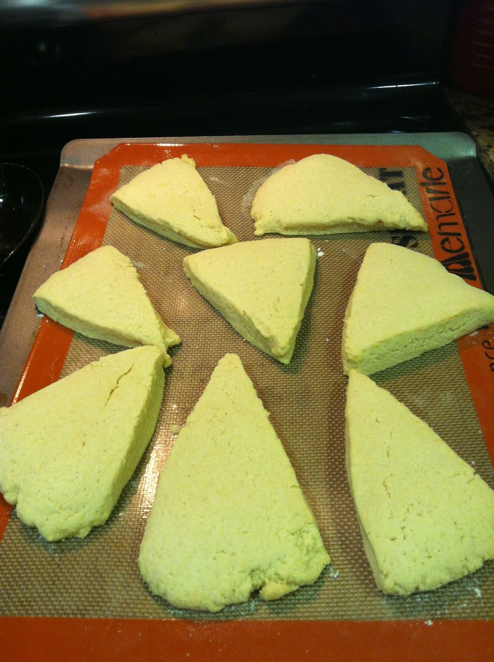 Bake the scones at 375 degrees for about 12 minutes, or until slight cracks are forming on the surface of the scones. They should not be squishy or soft to the touch.