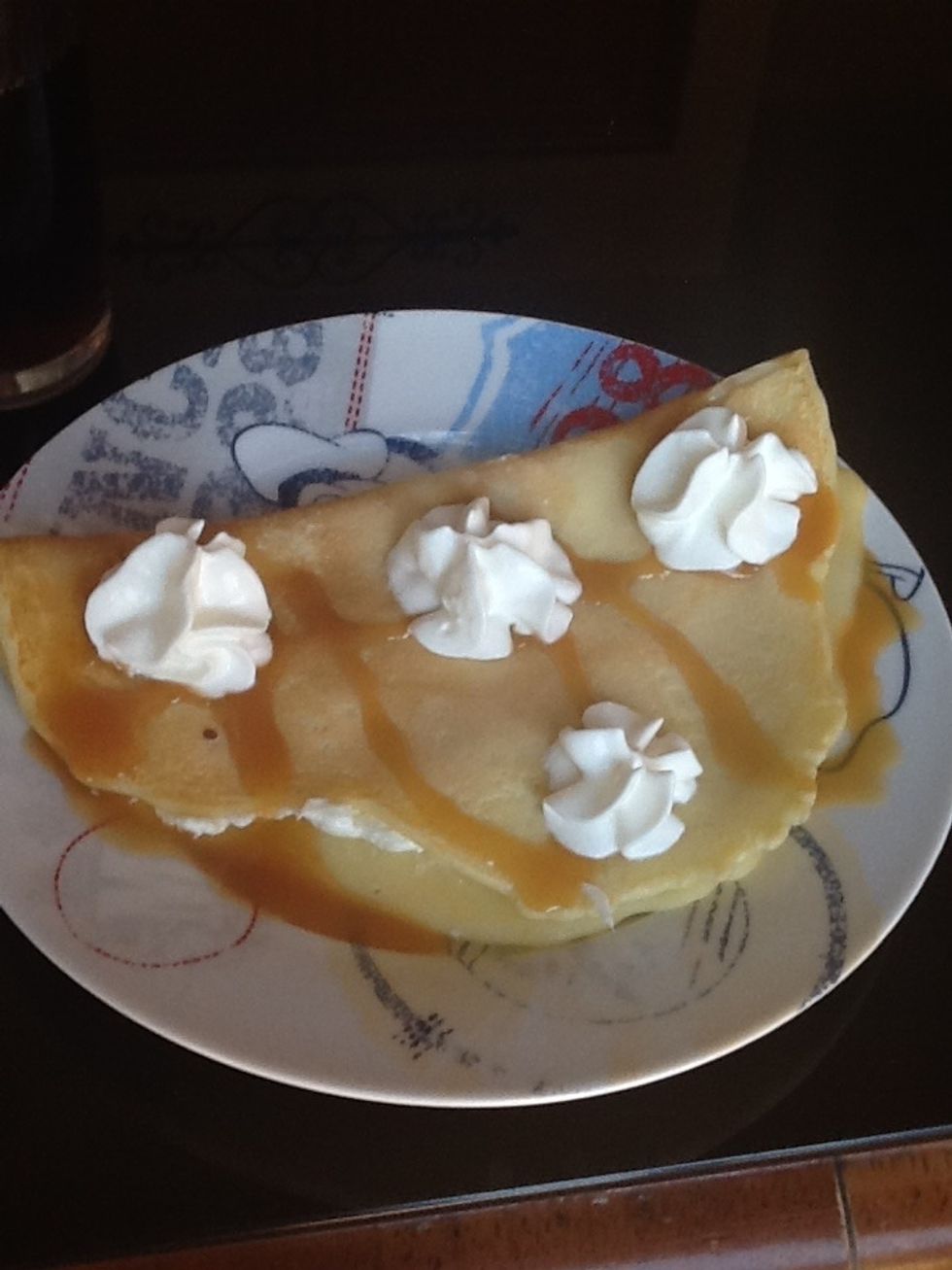 Pour on the griddle and leave for about 2 minutes ( one minute each side)