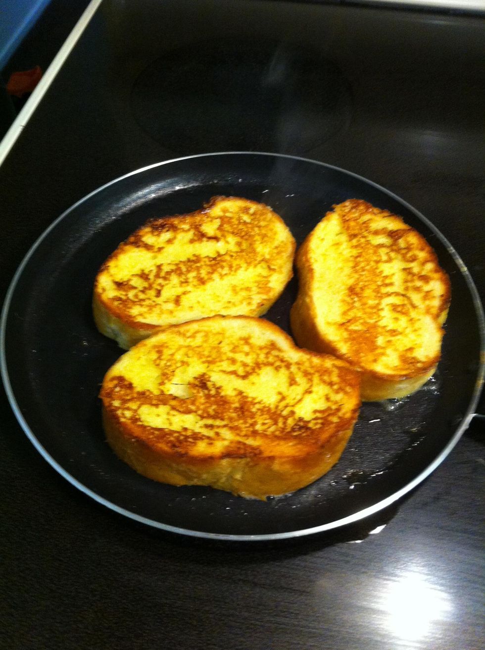 Cut your bread, not too thick or thin. One egg makes 6 slices. Sandwich bread works too, or whole grain/wheat.