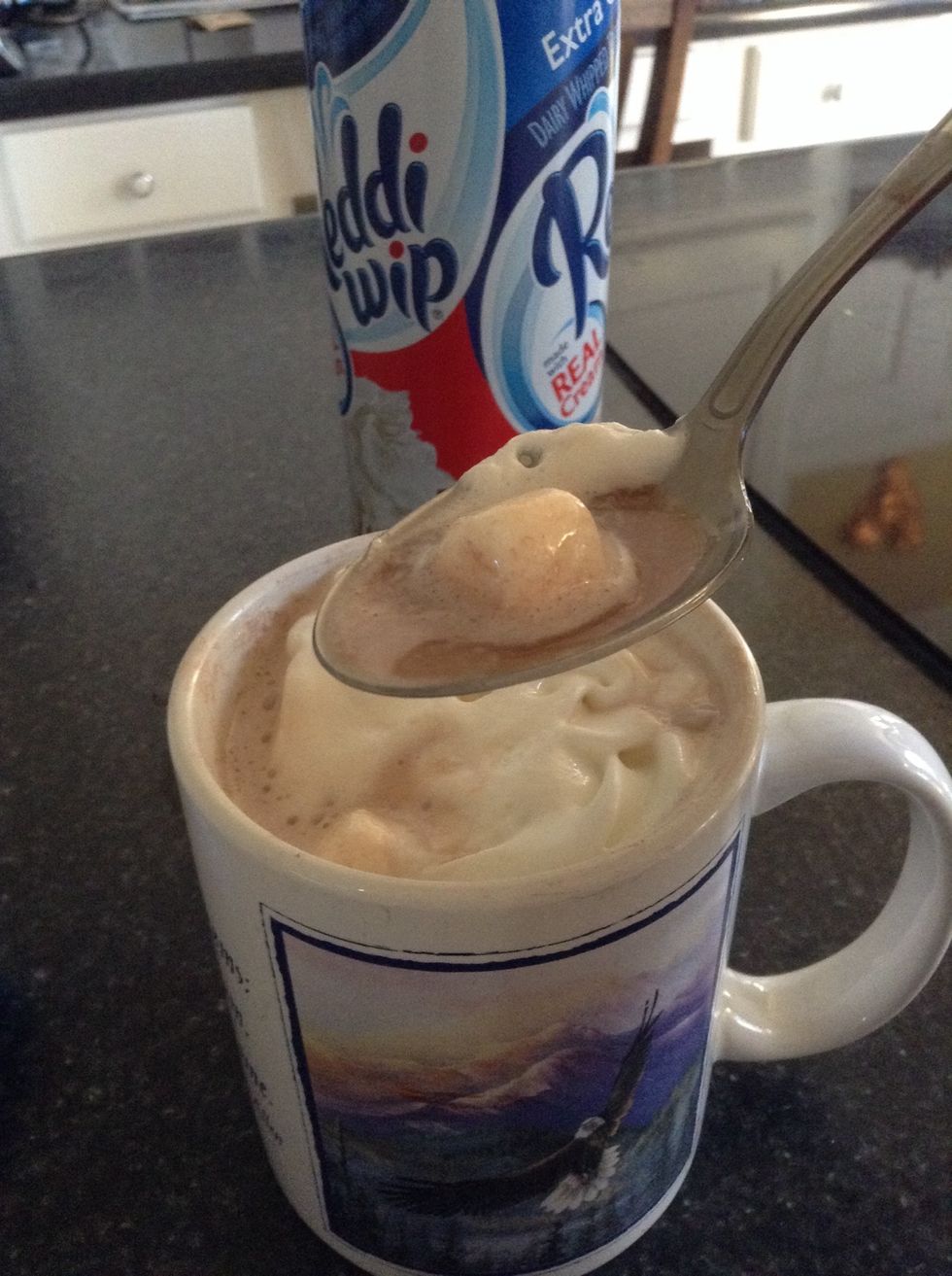 Pour all of your mix into your mug. I use Nestle hot chocolate mix.