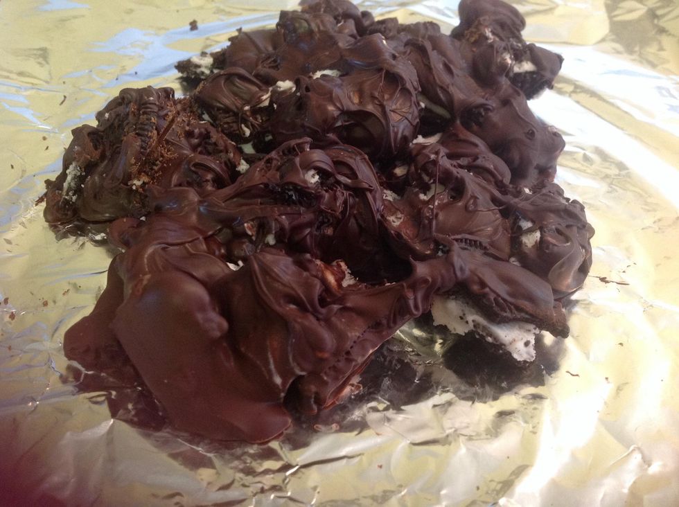Then put the Oreos and chocolate in the freezer for 15 min.
