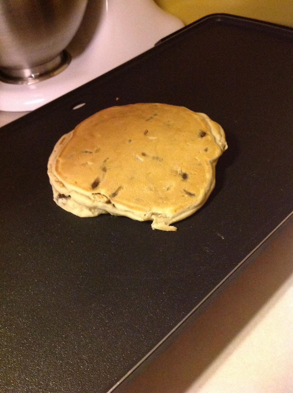 Tips to make your pancakes more healthy and fun. Add cut up fruit to the tops of your already cooked pancakes. In the picture above shows cut up bananas.