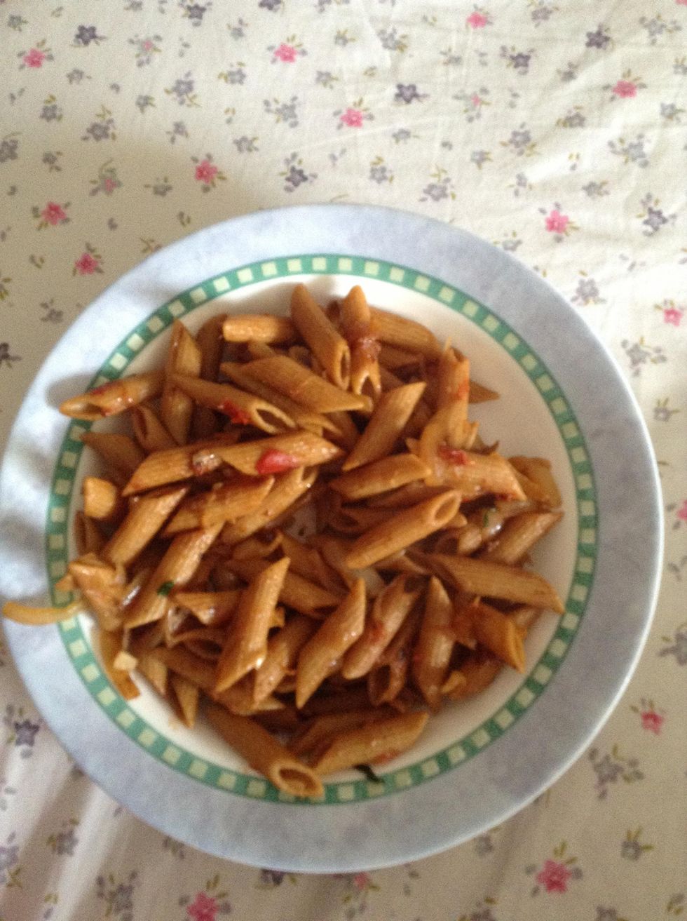 Drain your pasta and add it into your tomato mixture. Then mix it all together.