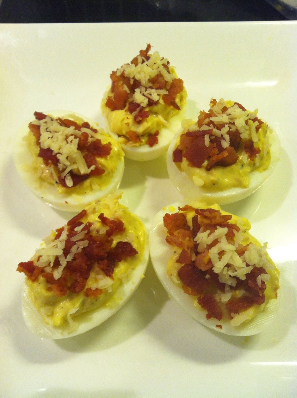 Put the mayonnaise, bacon bits, pepper and into the bowl of cooked egg yolk. Mix, mix, mix until you have something that looks like this!