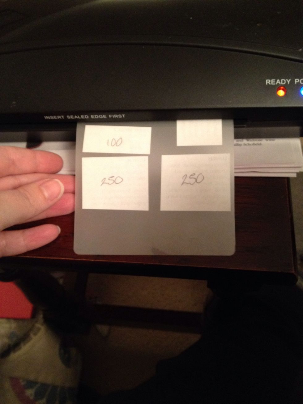 Not easy to see but am putting the meal strips into a laminating pouch
