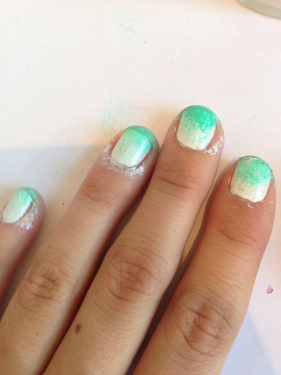 Brush the two colors ( base coat + a stronger color) on some sponge. Mix the two colors in the place where they meet.