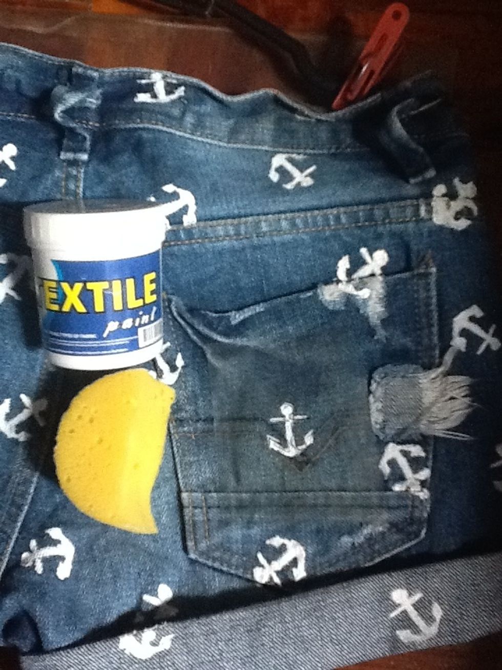 You can now make anchor print on denim shorts with textile paint.