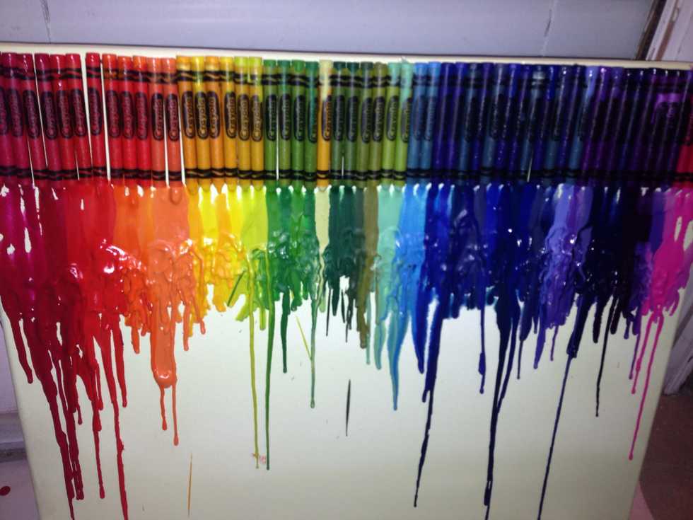 Line your crayons up along the edge of the canvas. Have fun matching rainbow colors, and make sure to remove dull colors like grey and brown.