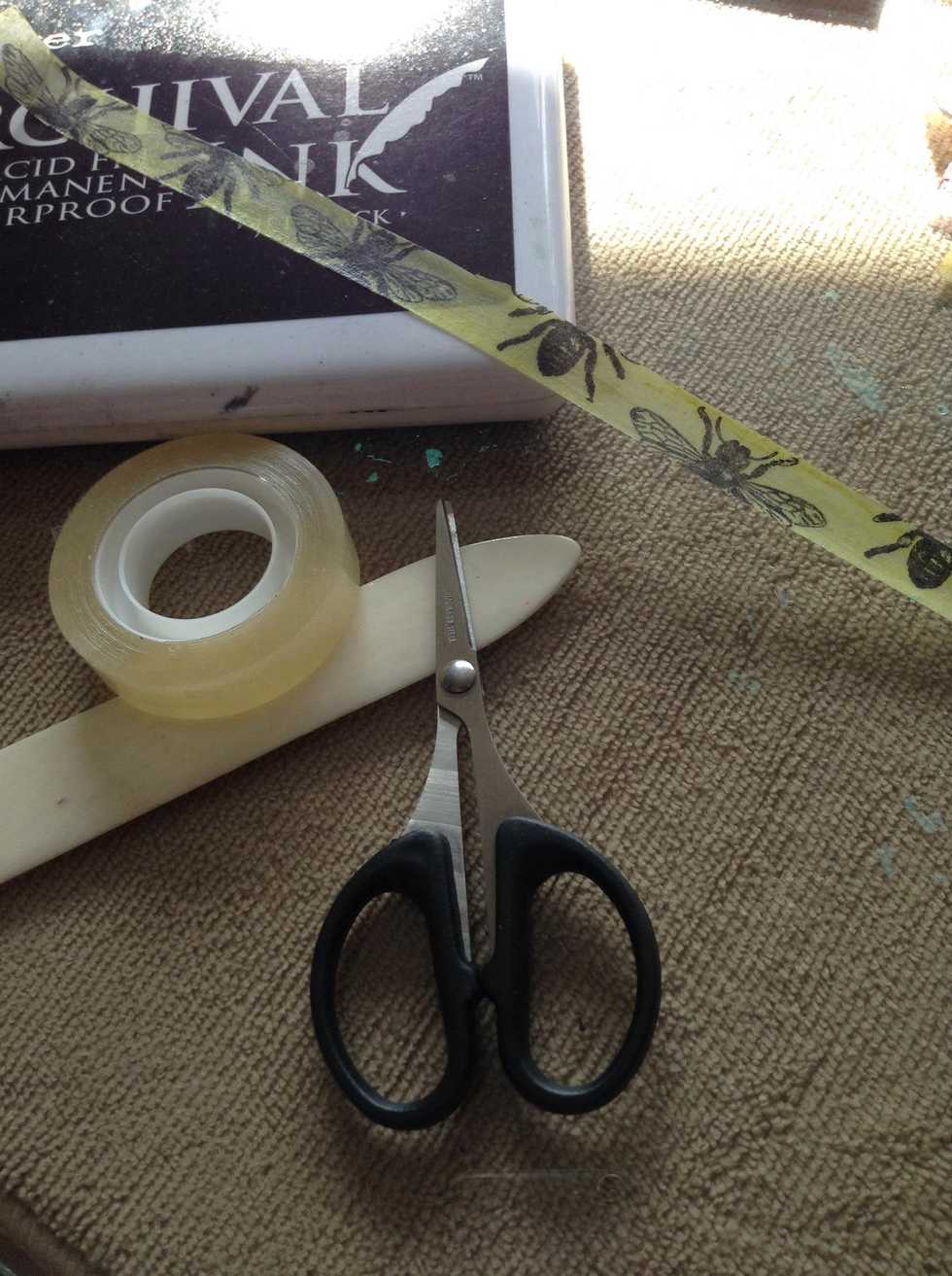 Vvvwaahhlah! Your diy washi tape is complete! The mod podge will not only hold in the ink from the stamp but it will also make the tape appear a little bit translucent!