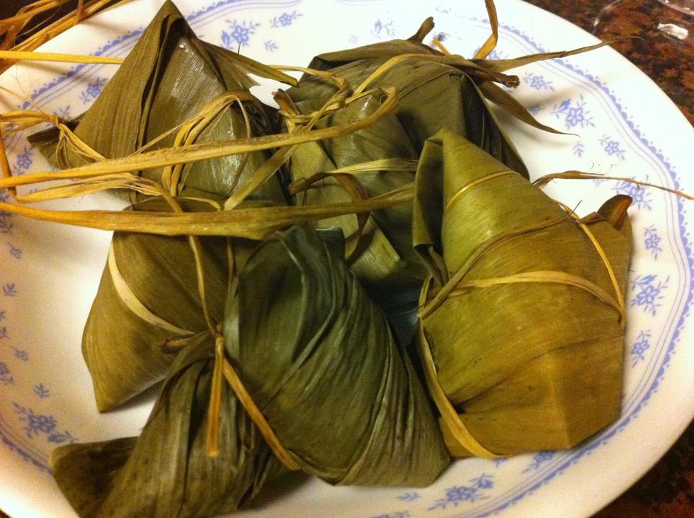 Wrap in softened leaves and tie tightly. Steam for 30 min in steamer.