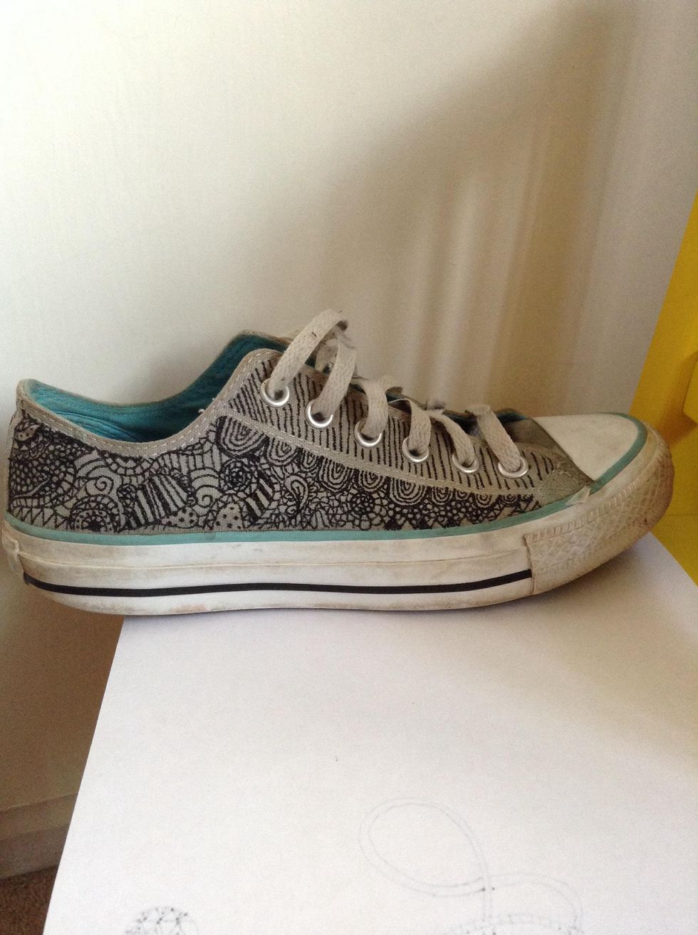 If your shoes are dirty like mine. clean them by scrubbing them with an old toothbrush and some lukewarm soapy water