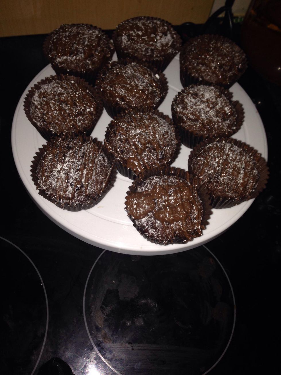Then melt the chocolate chunks over a sauce pan and gently drizzle over each muffin for extra indulgence