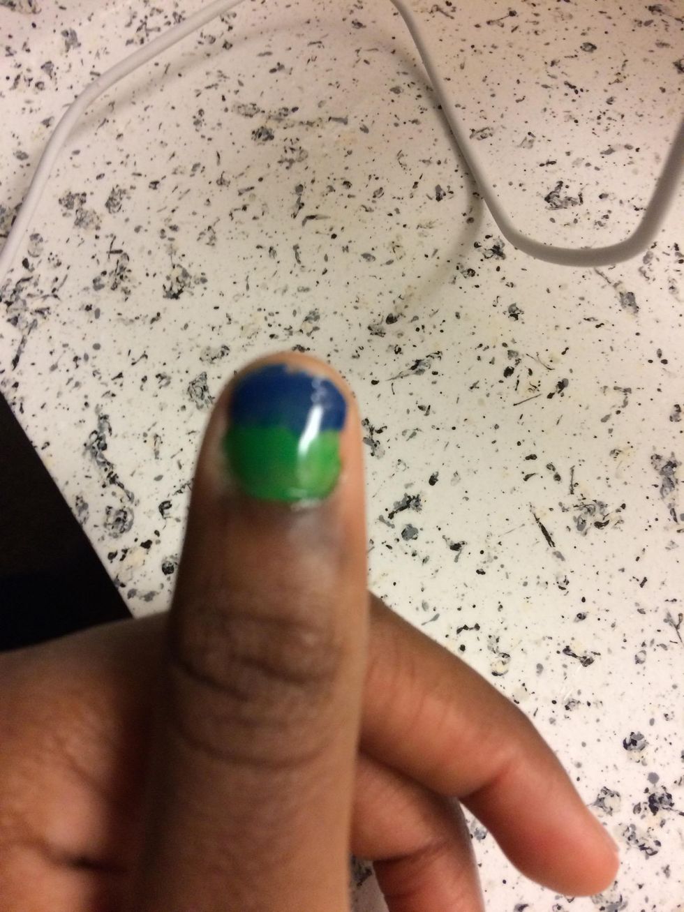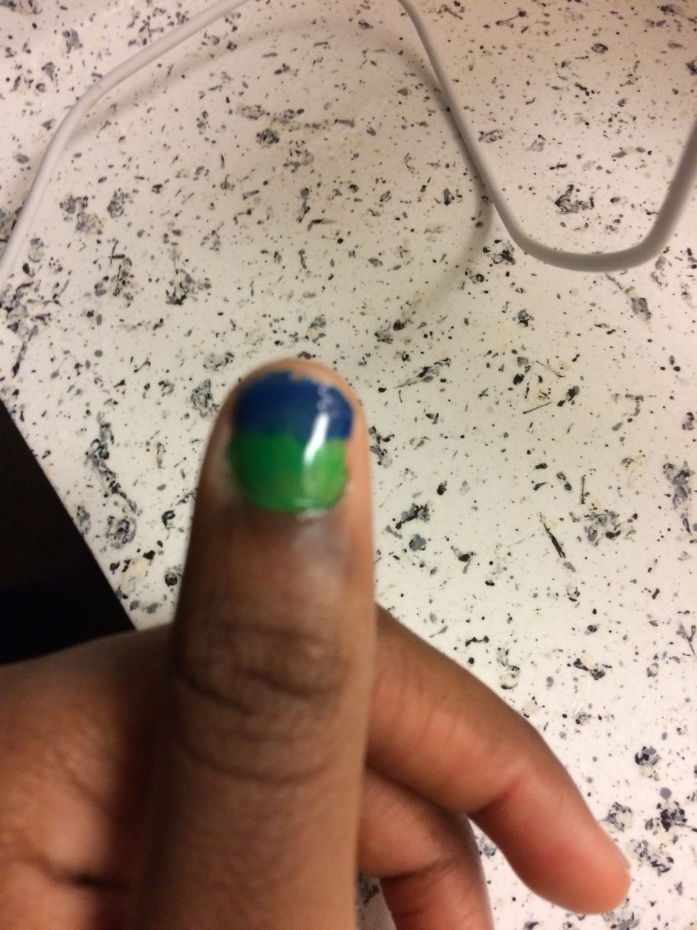 Apply the first color of your choice (its fine if you get polish on the tape)
