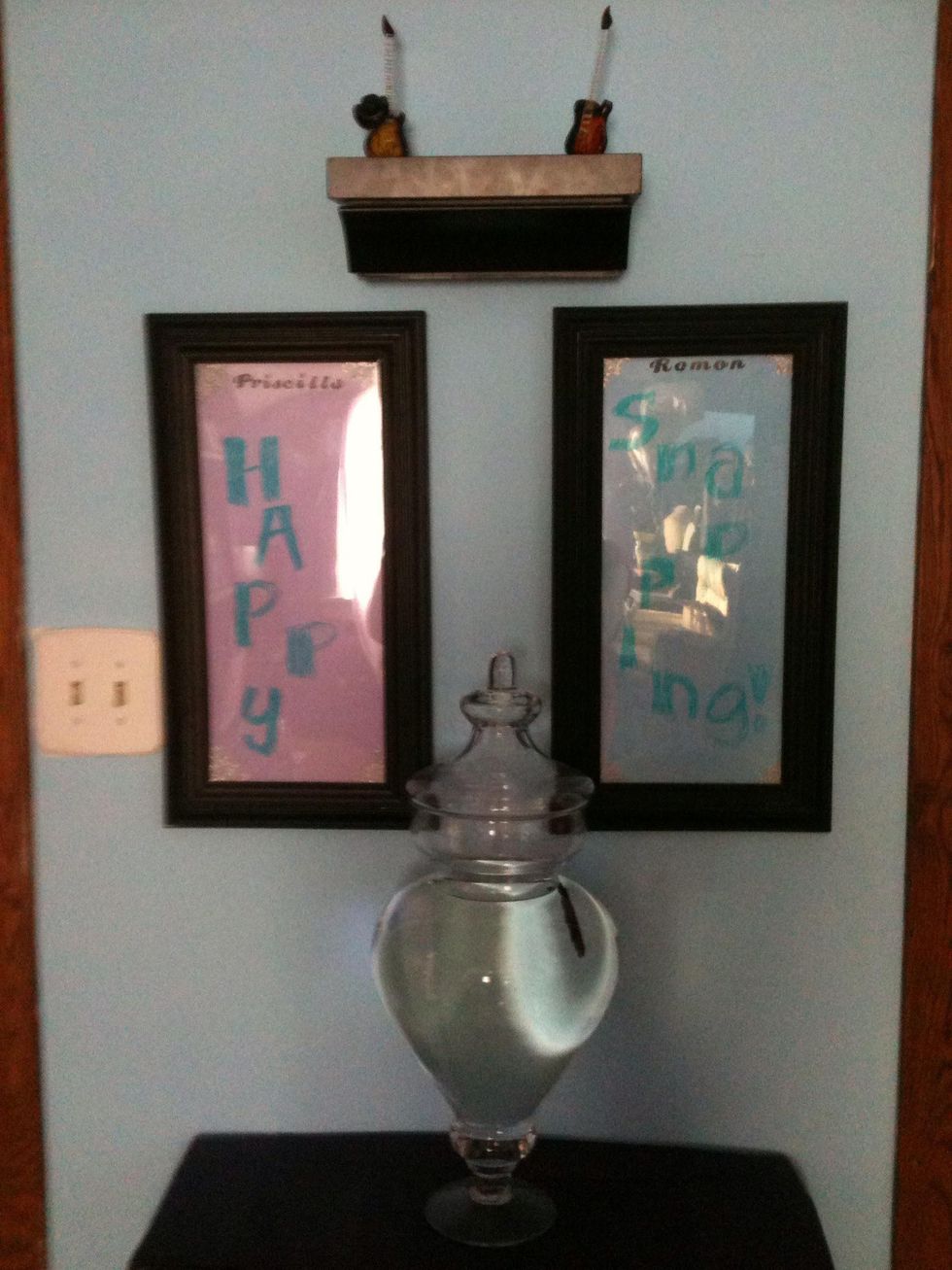 Using the paper from the frame as a template, cut the scrapbooking paper. My frame is longer than my paper so I used two pieces.