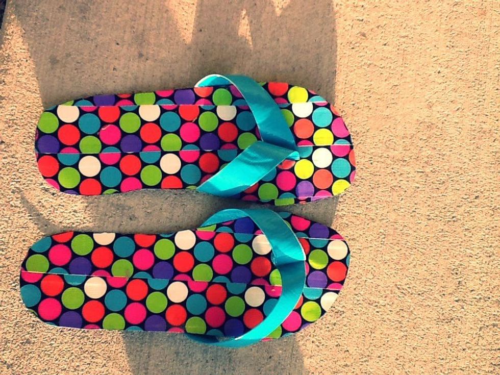 Then, tape the bottom of the flip flop to keep the strips in place.