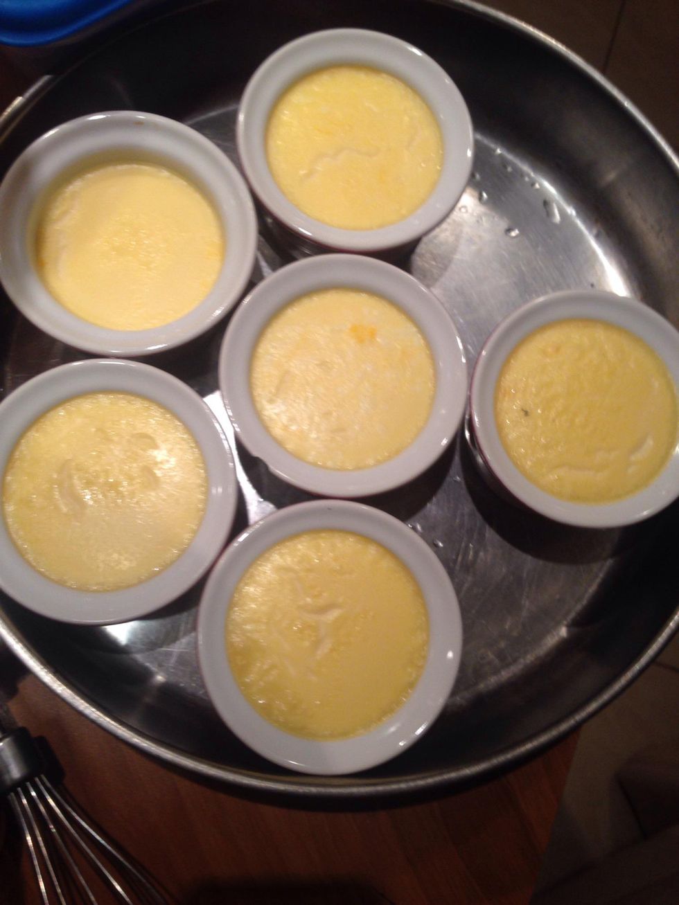Place the mugs in the oven pan with at least 2-3 cm depth