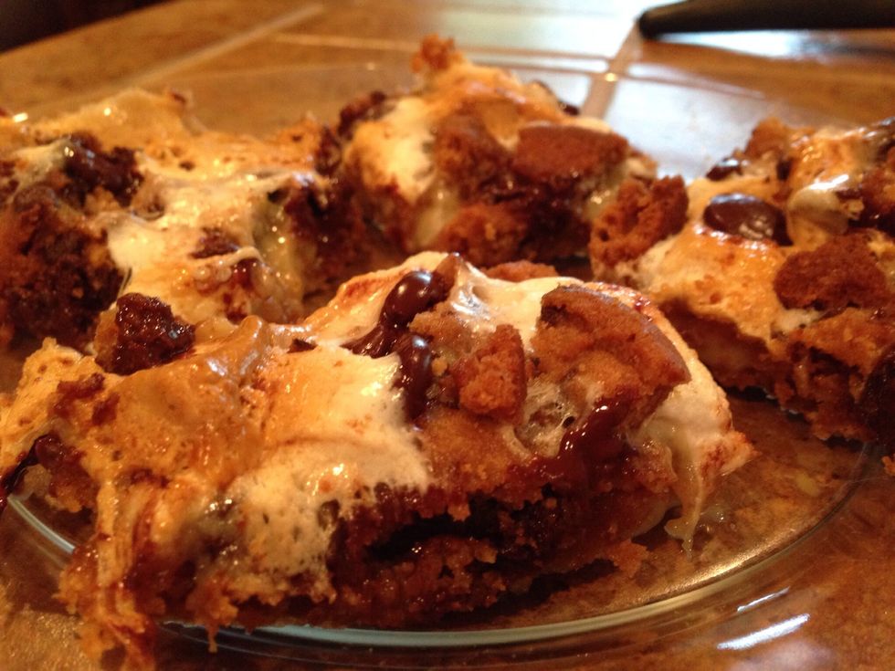 Dump on 1 cup crumbled cookies. This is the greatest idea for a top crust for a s'more.