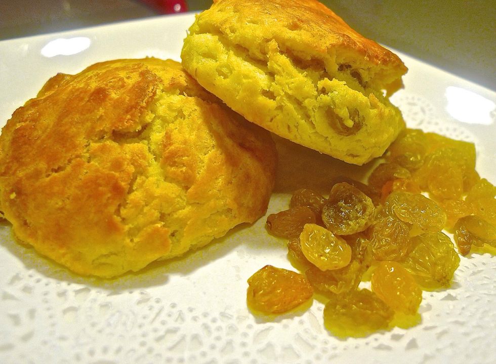 To make earl grey infused tea scones, first prepare to soak raisins in earl grey tea.