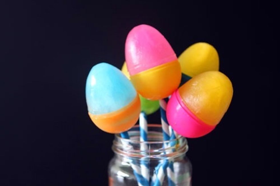 Once all eggs are a little less than full, place in egg carton, hole side up. Place straw or Popsicle stick in the hole and freeze overnight.