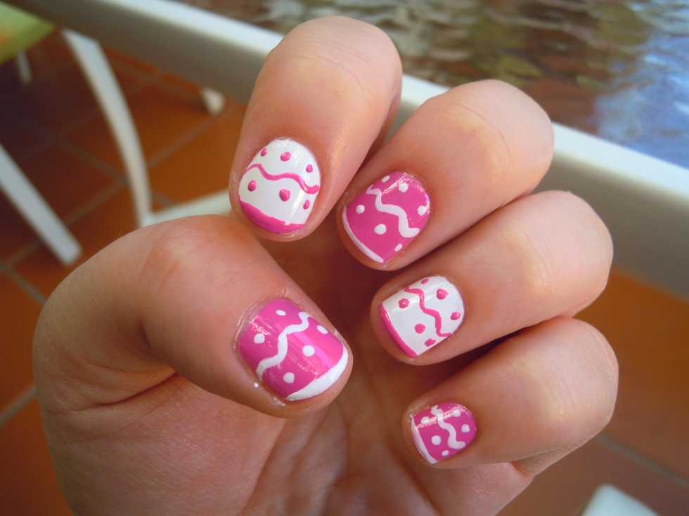 Lastly, make a curled line in the middle of every nail, and draw small points between the line. And you're done! So cute right??