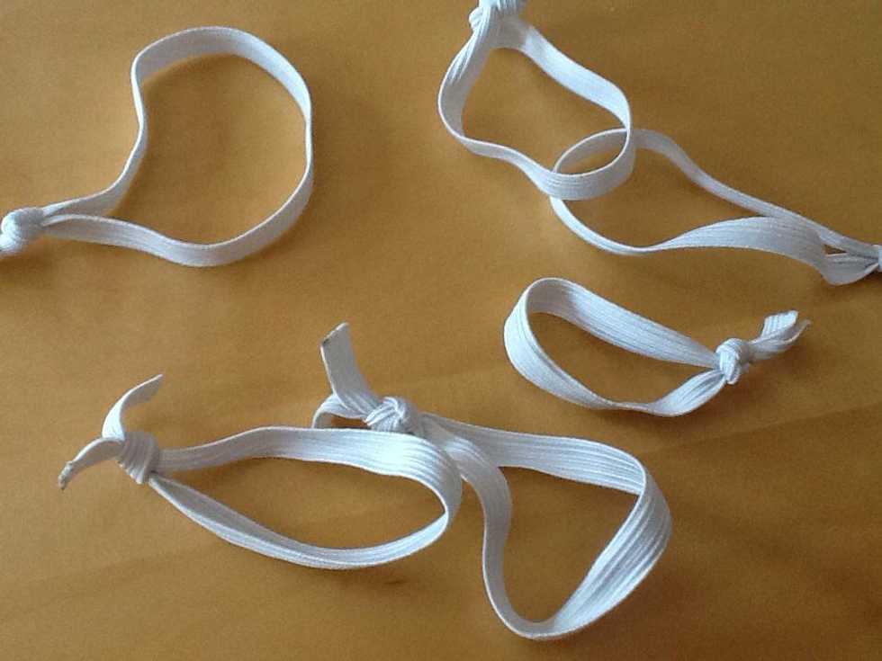 I made five or so white ones because that is the only color I had. I encourage you to use any color! Pink, brown, green, purple, gold, even sparkles! I wonder if they make lace elastic.....
