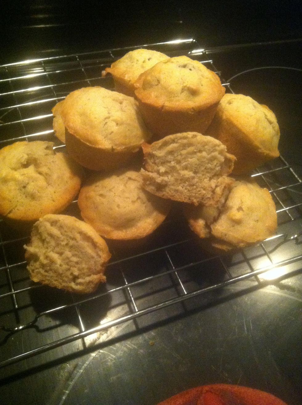 Spoon into the greased muffin pan evenly and you should get 12 muffins. ( I did half the recipe and used a mini muffin tin so I got 12 mini muffins out of this recipe) ☺️