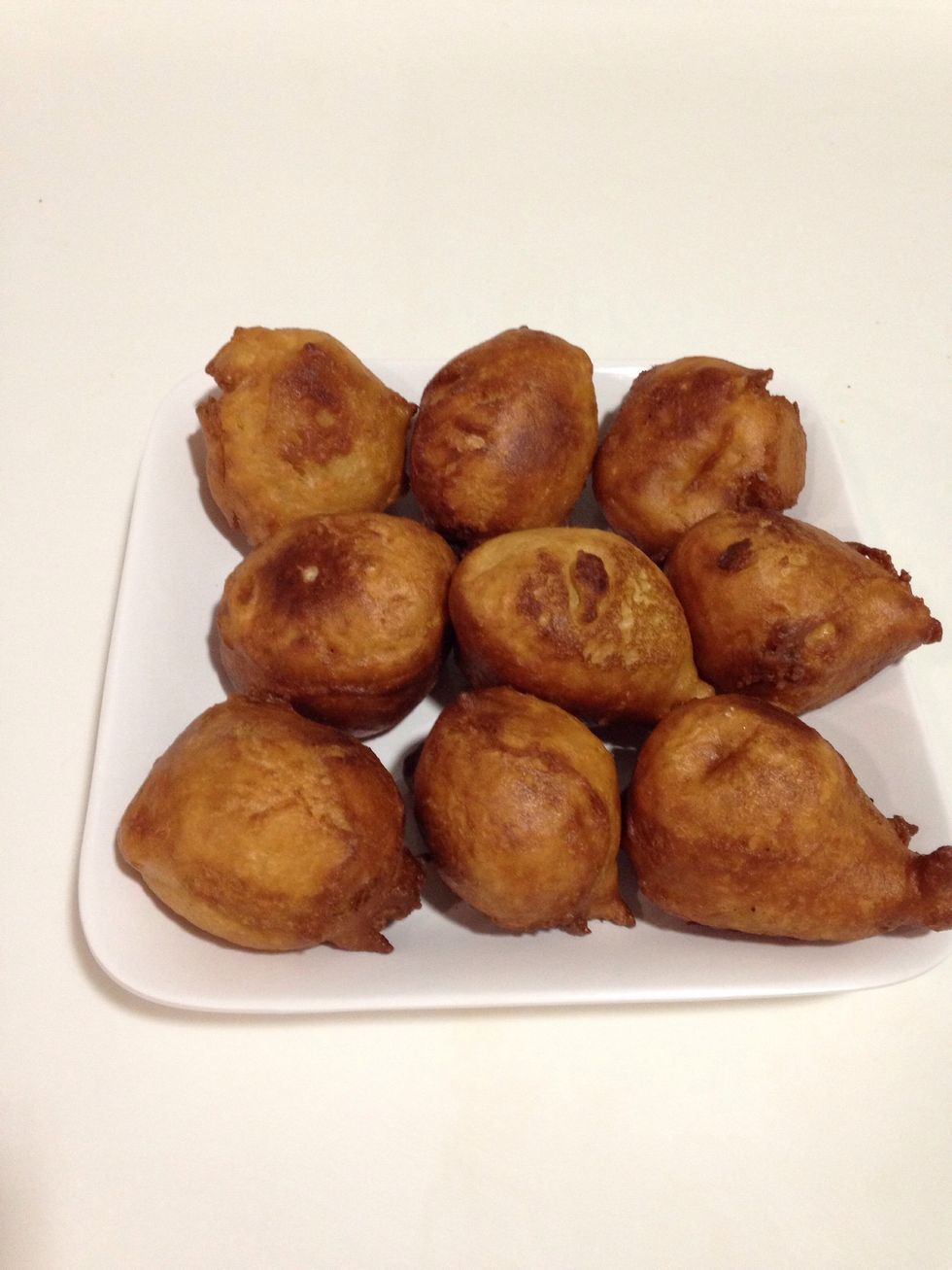 Scoop batter and put into the oil careful not to overcrowd the pot as they do rise in the oil