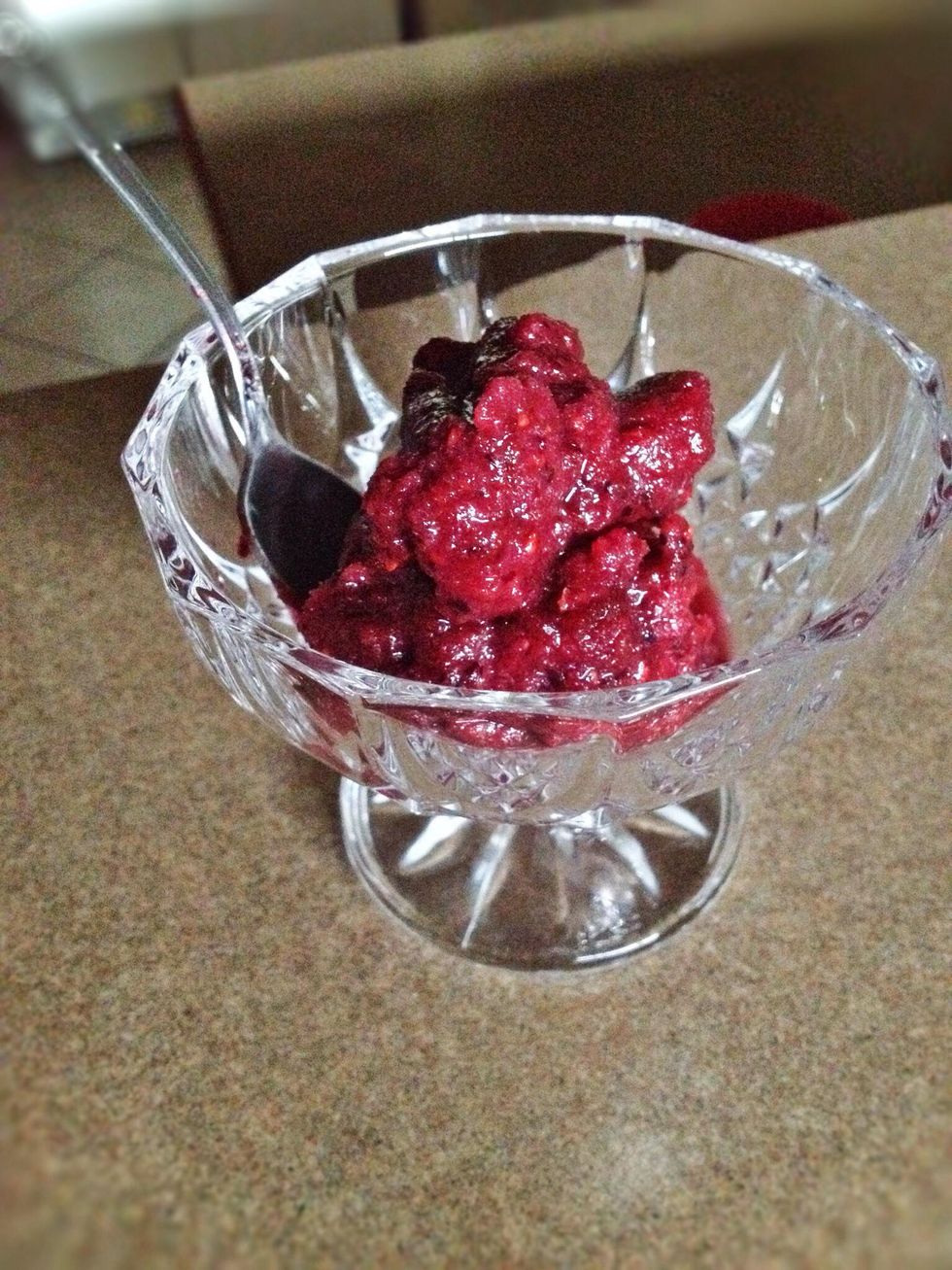 You'll be left with something like this. Don't freak out! Just pop it into the freezer for a little. Or add some more frozen banana slices and blend again until creamy if you're serving it now.