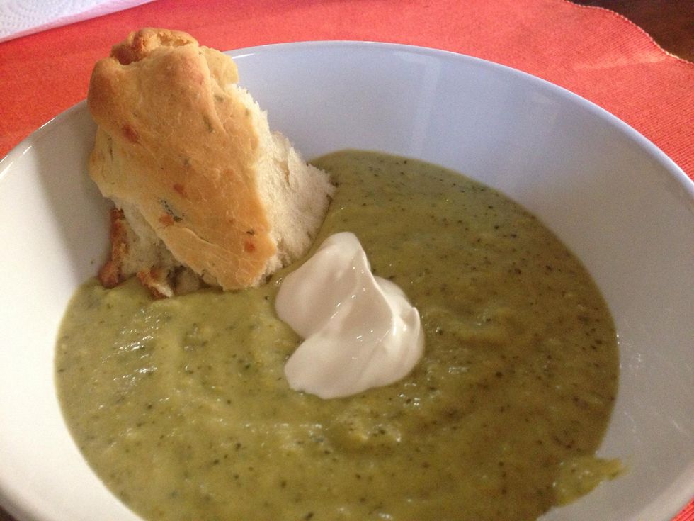 When cheese is melted, add mixture to the broccoli puree & stir well to combine.