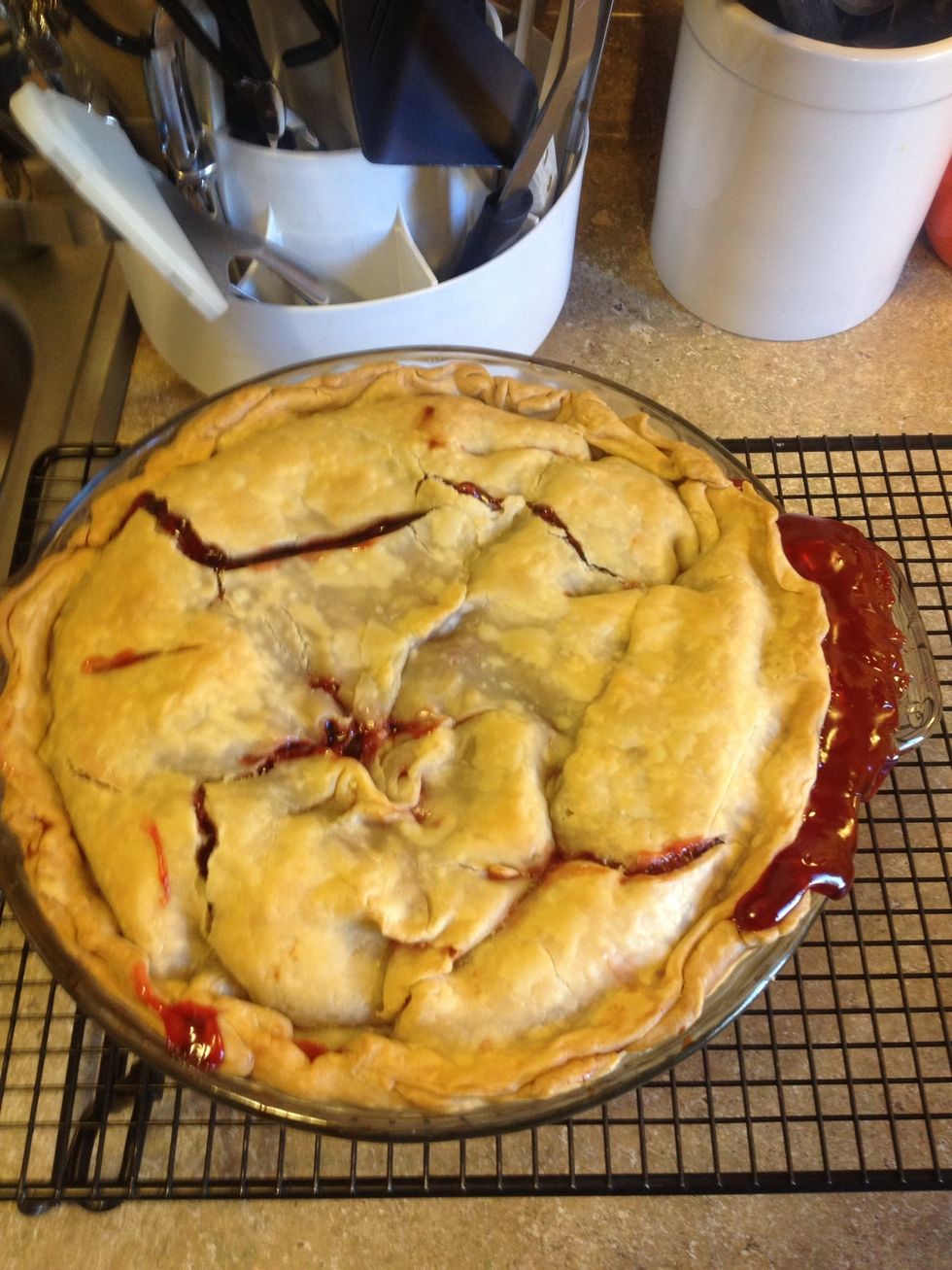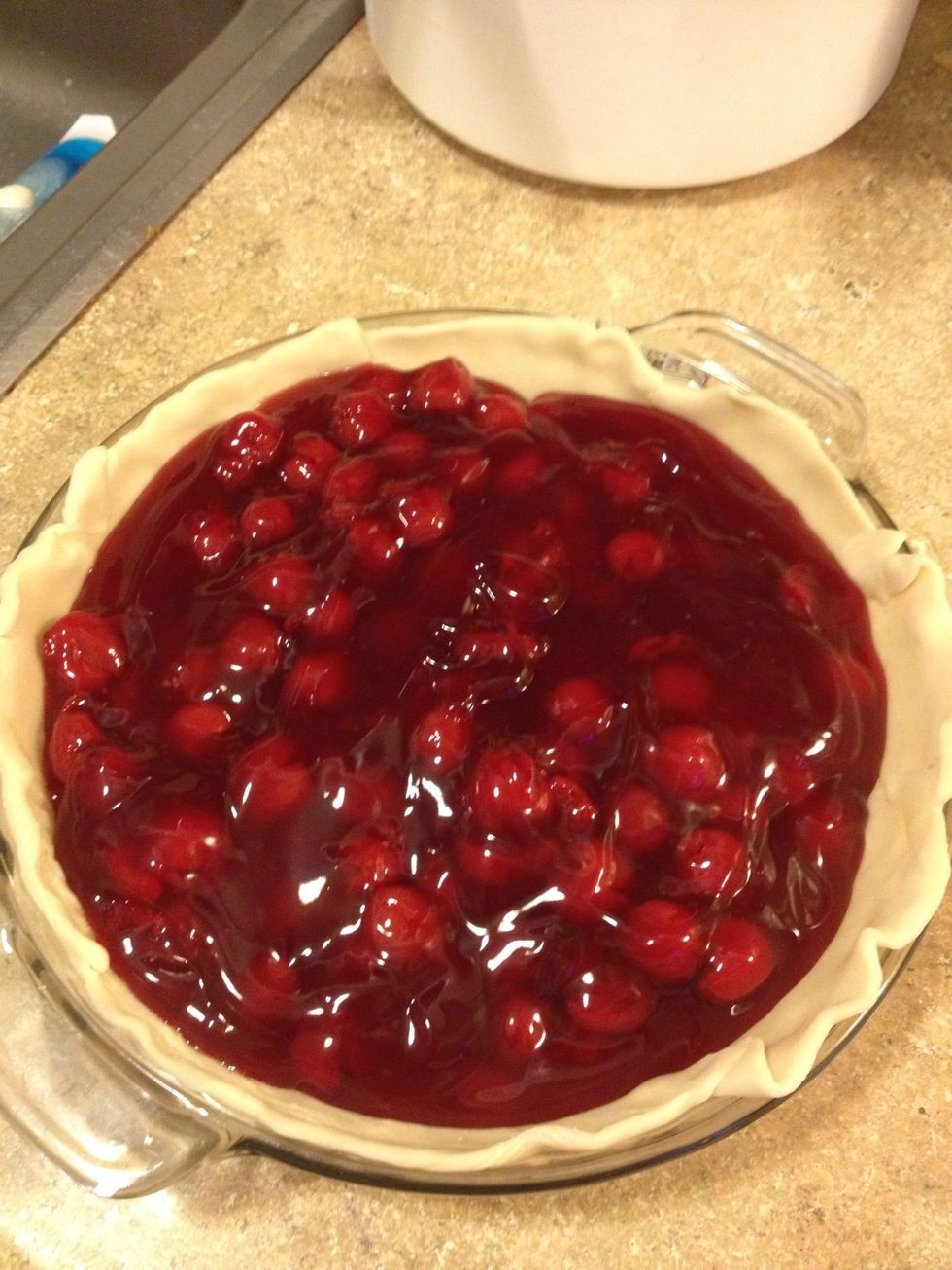 Take two cans of cherry pie filling and put on top crust