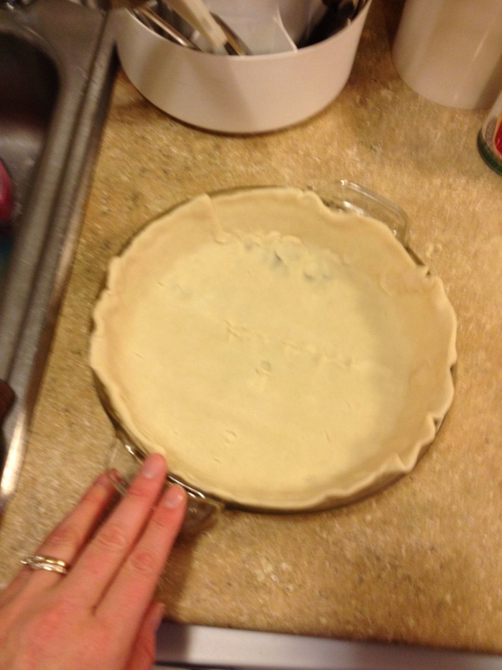 Unroll one pie crust and fit to the bottom of pie pan